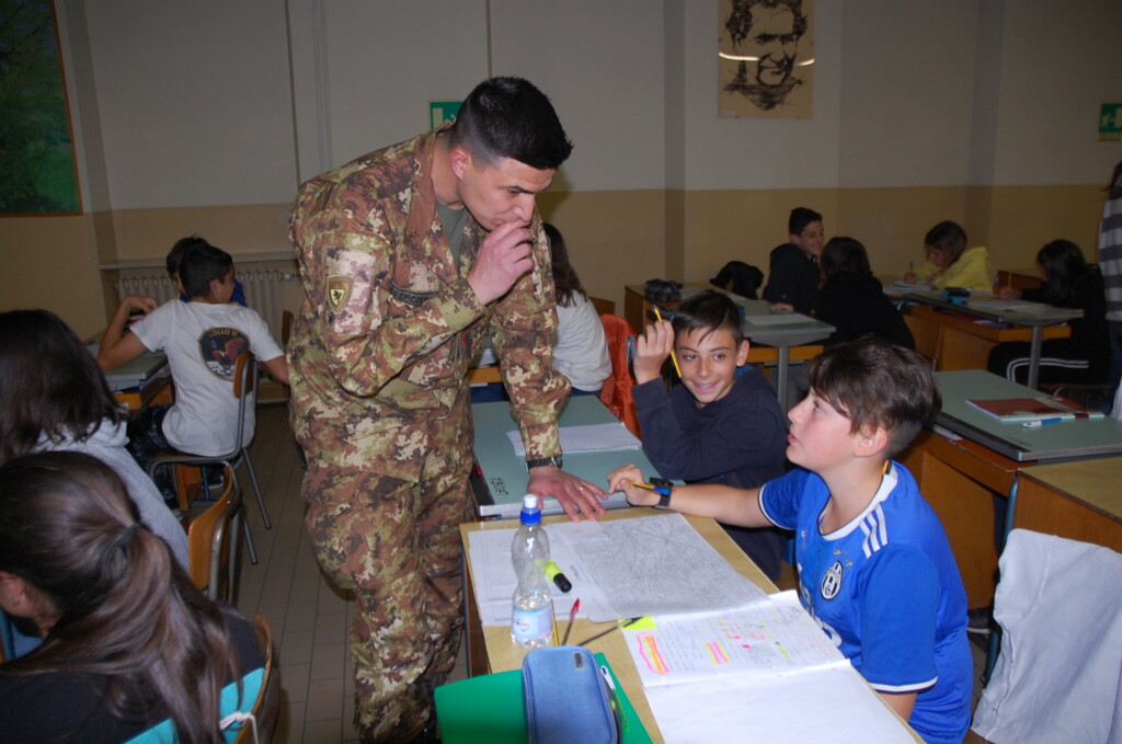 Mercoledì 8 maggio per le classi prime e seconde medie sono saliti in cattedra il Capitano Meoli e il 1° Caporal Maggiore Nocella del Terzo Reggimento Alpini di Pinerolo. L’incontro è stato dedicato alla Topografia e all’Orientamento. La grande capacità comunicativa dei due militari ha affascinato gli studenti in una lezione di oltre tre ore che ha consentito ai ragazzi di conoscere le carte topografiche e il loro utilizzo. Dopo aver fornito le nozioni teoriche di base, i ragazzi sono riusciti a individuare, nelle prove pratiche, un punto sulla carta e da esso risalire alle coordinate. E’ stato insegnato inoltre l’utilizzo del coordinatometro militare e con questo strumento gli studenti hanno imparato a trovare la posizione di un determinato luogo sulla carta con l’approssimazione di 20 metri circa.