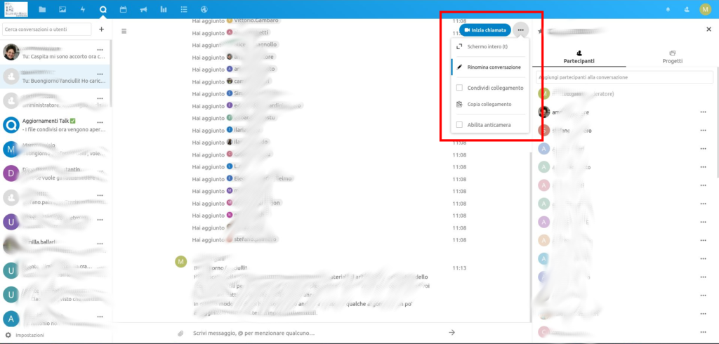 Per cambiare il titolo della conversazione, è sufficiente andare sui tre pallini in alto a destra nella conversazione e cliccare su “Rinomina Conversazione”